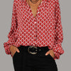 Elevate your wardrobe with this versatile V-neck blouse, designed to offer both comfort and style for various occasions. Its classic silhouette and thoughtful details make it a staple piece that seamlessly transitions from day to night.