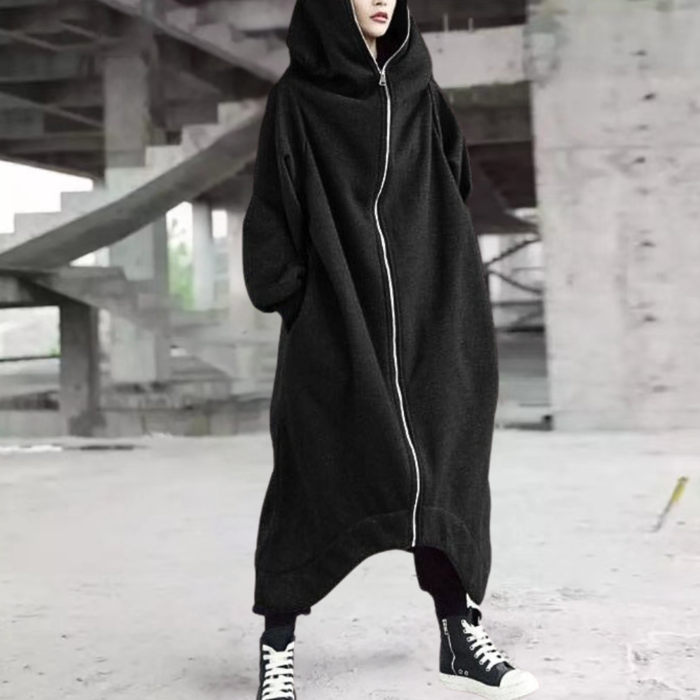 Oversized Women's Coat with Hood and Zipper – Cozy Elegance for Every Season