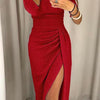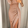 Make a statement with the Eris bodycon dress, designed to accentuate your curves and exude luxury. Crafted from shiny bright silk fabric, this mid-calf dress features a high waist and a stylish off-shoulder neckline, making it perfect for evening events, parties, or special occasions.
