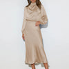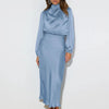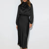 The VintageGrace dress is a timeless piece that exudes sophistication and charm. Crafted from luxurious satin, this floor-length gown features a flattering A-line silhouette and subtle pleats, making it perfect for formal dinners, weddings, or elegant evening events.