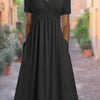 Embrace the summer season with this versatile V-neck dress, designed to keep you cool and stylish during warm days. Its lightweight fabric and relaxed fit make it a perfect choice for various occasions, from casual outings to beach getaways.