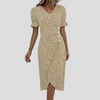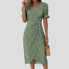 Step into summer with timeless elegance in this Elegant Floral Midi Dress, crafted with a breezy silhouette and vintage-inspired details. The flattering V-neckline, soft puff sleeves, and ruched waist combine to create a feminine silhouette, while the floral pattern and pleated A-line design add movement and charm.