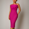 Make a grand entrance in the strapless midi dress, designed for statement-making elegance. This luxurious bodycon dress features a flattering sweetheart neckline, smooth silhouette, and a glamorous feather-trimmed hem that sways with every step. Crafted from premium stretch-knit fabric, it offers both comfort and sophistication—ideal for formal events, cocktail parties, or upscale evenings.