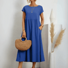 With its classic O-neckline, short sleeves, and natural waistline, this pullover dress blends timeless style with casual ease — perfect for vacations, weekend outings, or simply enjoying warm sunny days. The solid color design and subtle shirring details make it easy to dress up or down depending on the occasion.