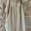 This loose-fitting shirt dress combines breathable cotton and linen fabrics to create the perfect warm-weather essential. Designed for everyday ease, its flowing silhouette, button-down front, and classic collar offer a versatile look that transitions seamlessly from casual outings to relaxed weekends.