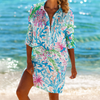 Bring vibrant flair to your beachwear with this loose-fitting, multi-color printed blouse, perfect as a bikini cover-up or a stylish vacation shirt. Designed with a turn-down collar, full-length sleeves, and a flowing long silhouette, this single-breasted blouse effortlessly combines comfort and fashion. The polyester-spandex blend ensures a lightweight, quick-drying fit ideal for beach days or breezy strolls.