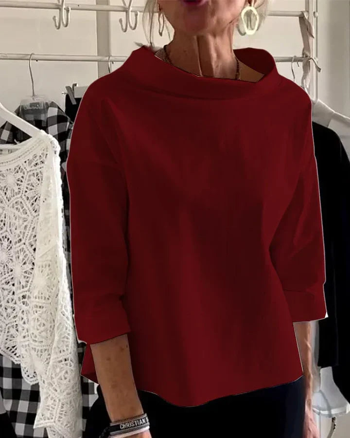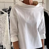 Chic, cozy, and easy to wear — the Miriam top blends comfort with sophisticated flair. Featuring a unique half turtleneck and broad lapels, this top elevates your casual outfits with subtle elegance and a flattering fit.