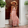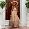 The boho lace tiered maxi dress captures romantic charm and carefree elegance. Featuring a flowing A-line silhouette and delicate lace detailing, this dress is perfect for outdoor events, beach strolls, or dreamy summer evenings. Crafted from soft synthetic fibers, it offers both comfort and graceful movement.